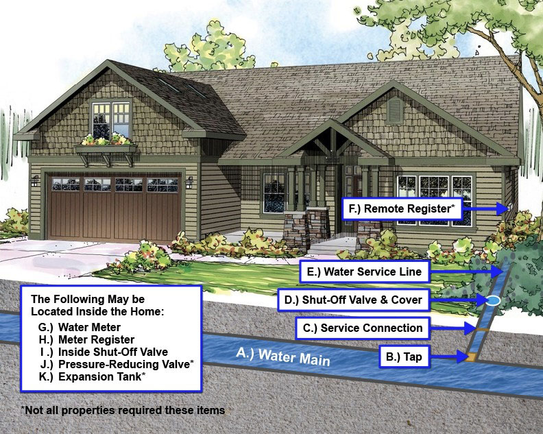 - It is the customer’s responsibility to install, repair & maintain their water service from the property line into their home, up to & including their water meter. A customer may hire LRWC to repair customer service line leaks or may choose a contractor at their own expense. LRWC reserves the right to inspect the service line prior to backfilling.
